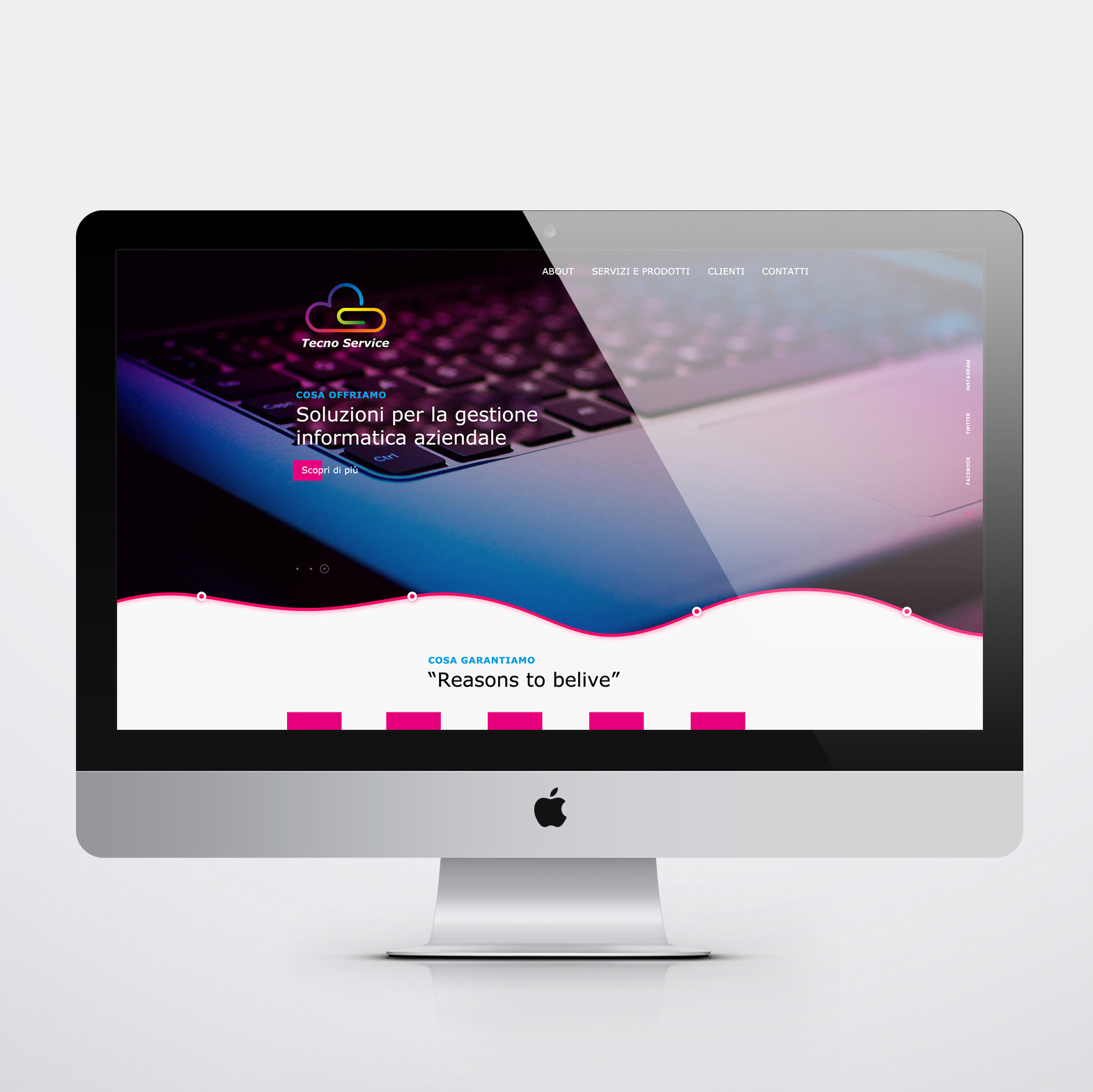 Il progetto della nuova identity per Tecno Service ha coinvolto anche lo studio per il nuovo sito web a partire da un nuovo assetto dal punto do vista dell’organigramma della navigazione, fino ad arrivare al disegno del layout del sito e a quello di una serie di pittogrammi specifici che simboleggiano vari ambiti tecnici ricoperti dal business aziendale.